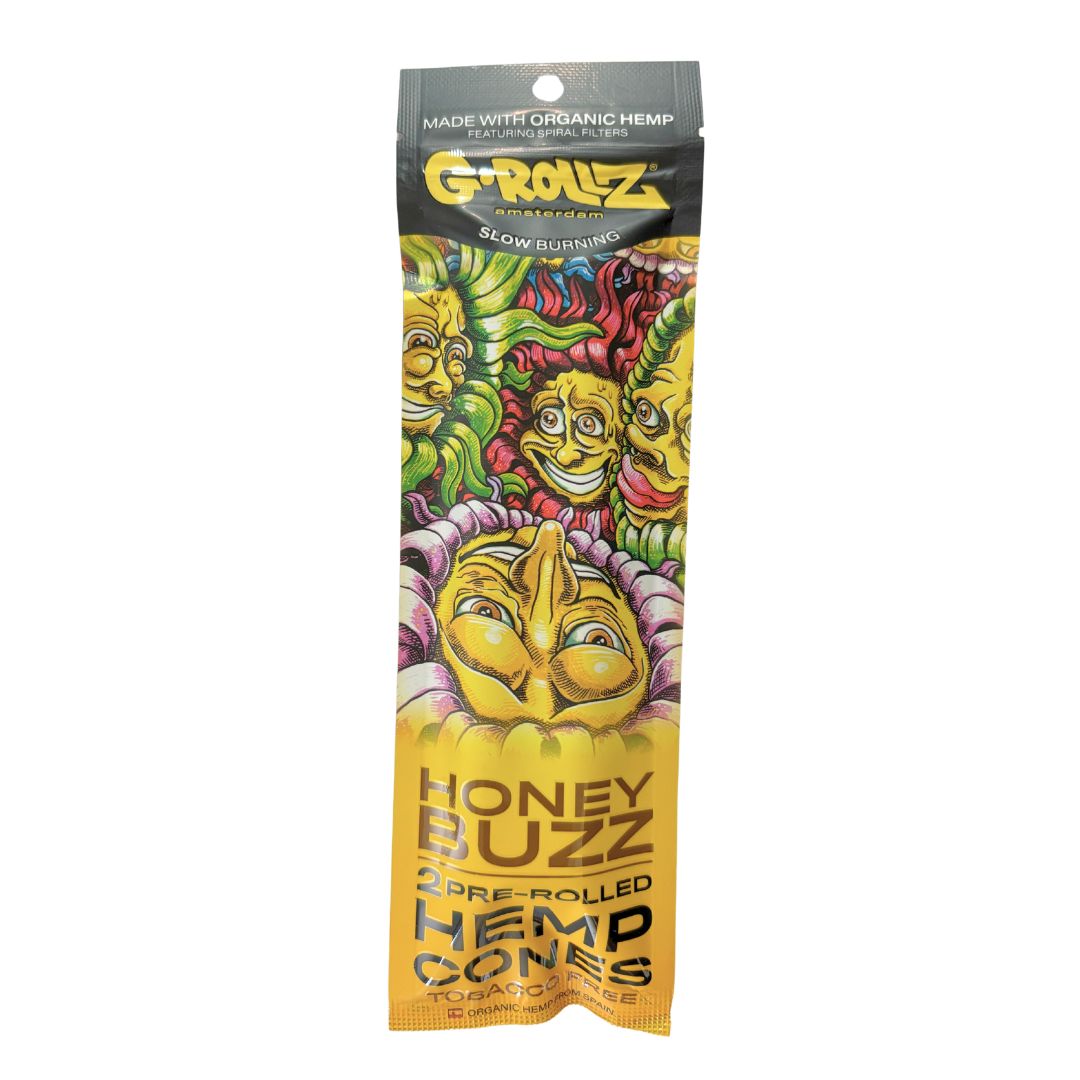 G-Rollz Honey Buzz Flavoured Hemp Cones contain 2 pre-rolled cones per Pack.