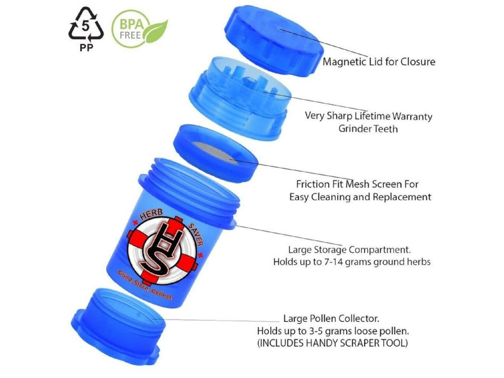 Mini Herb Saver Grinders, like their full-size counterparts, are also made of durable, medical-grade polypropylene. This means our high-quality plastic mini weed grinders are superior to the average aluminum grinder. Each 4-piece Mini Herb Saver grinder is water-resistant and odor-resistant thanks to its secure magnetic lid closure feature. Mini Herb Saver grinder teeth perfectly grind herbs down to the ideal consistency every time thanks to our lifetime warranty.