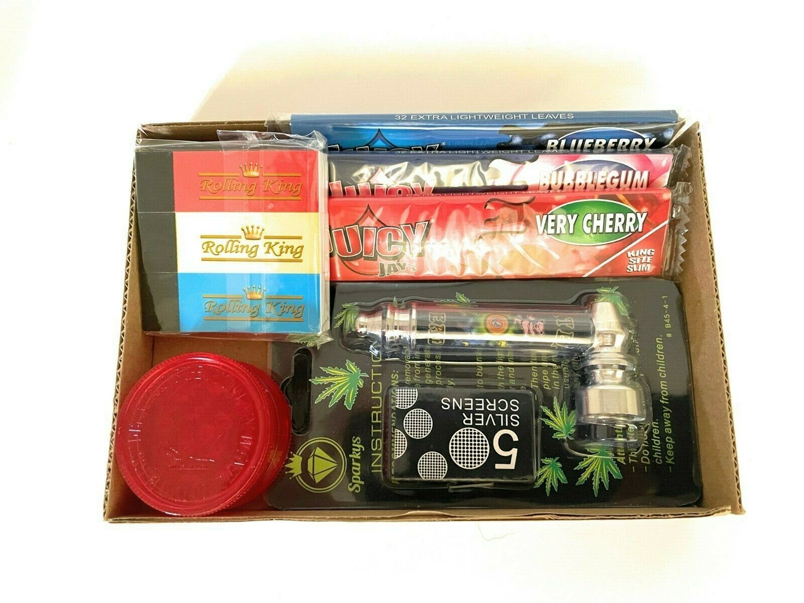 Juicy Jay Flavoured Papers Smokers Kit – Pipe – Mini Grinder – Rolling Tips Set