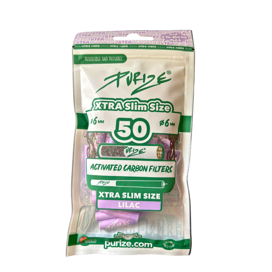 Purize 50 Carbon Activated Extra Slim Filter Tips Roach – Lilac