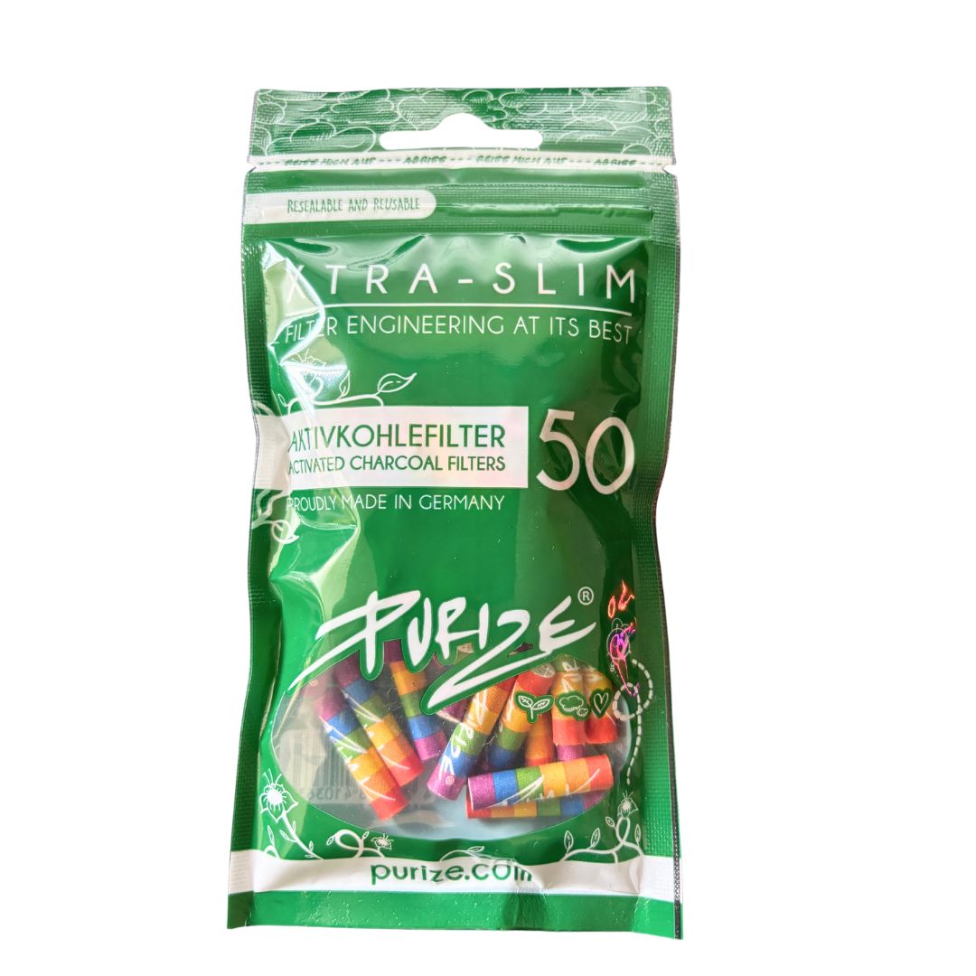 Purize 50 Carbon Activated Extra Slim Filter Tips Roach – Rainbow