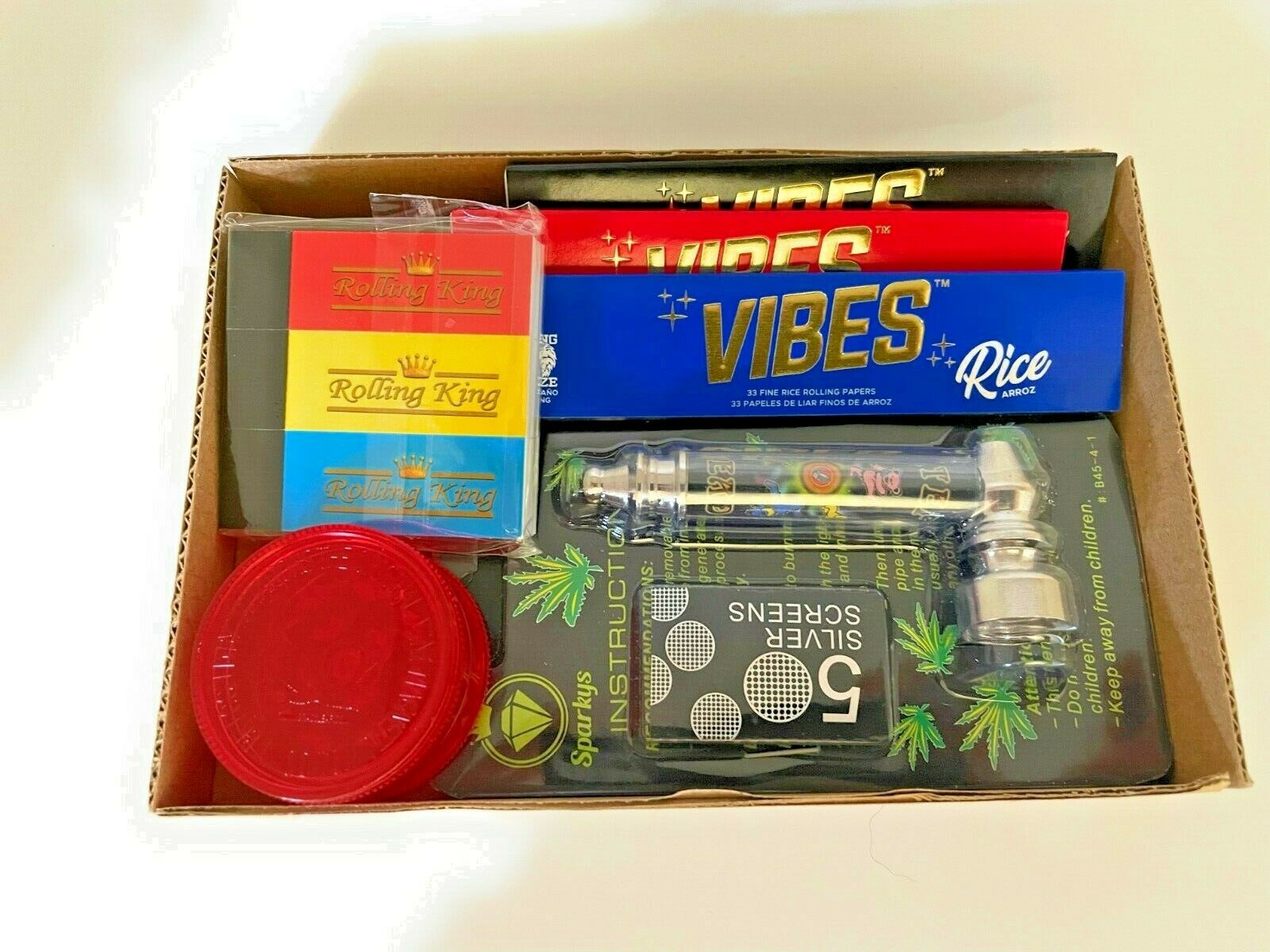 import placeholder for 10678VIBES Smokers Kit – Pipe – Mini Grinder – Papers – Rolling Tips – Gift Set